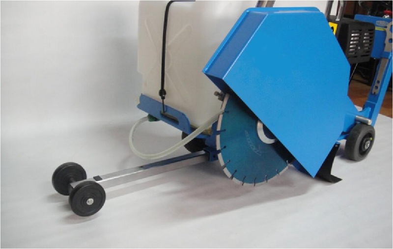 Das Absenken und Ausheben des Sägeblattes erfolgt stufenlos über eine Gewindespindel,